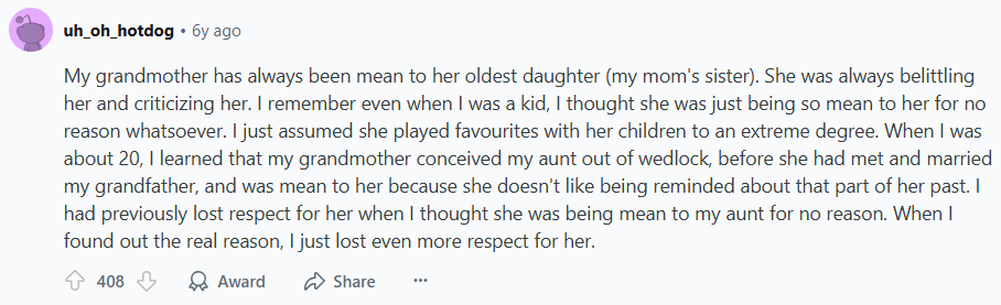 My entire family (including cousins 8+ years younger than me) knew that my dad had a second family. They kept it from me for years, even through my parents’ divorce and his eventual marriage to the “other woman.”