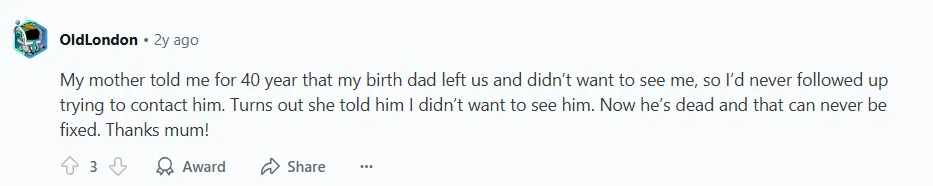Mom even knew, but they decided to wait until the night before I started my freshman year at a new school in a new city to tell me that he was leaving us. © SoundingWithSpiders / Reddit