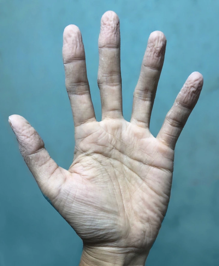 2. Wrinkly hands and fingers