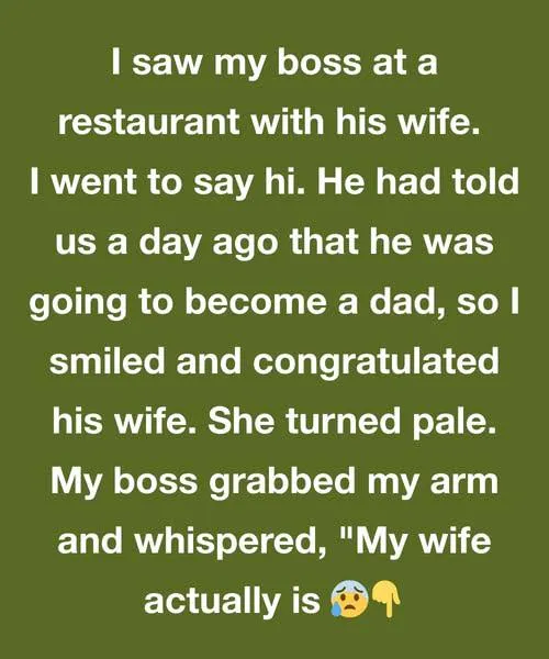 I saw my boss at a restaurant with his wife. I went to say hi. He had told us a day ago that he was going to become a dad, so I smiled and congratulated his wife. She turned pale.