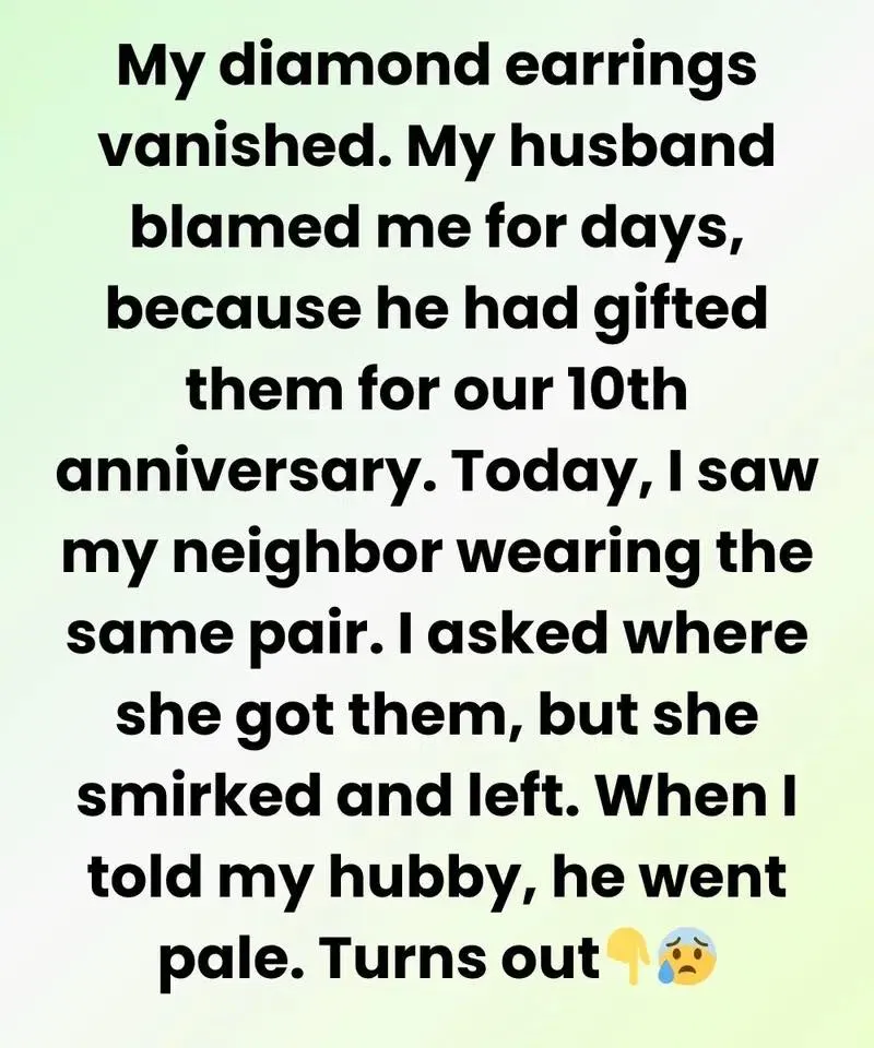 My diamond earrings vanished. My husband blamed me for days, because he had gifted them to me for our 10th anniversary.