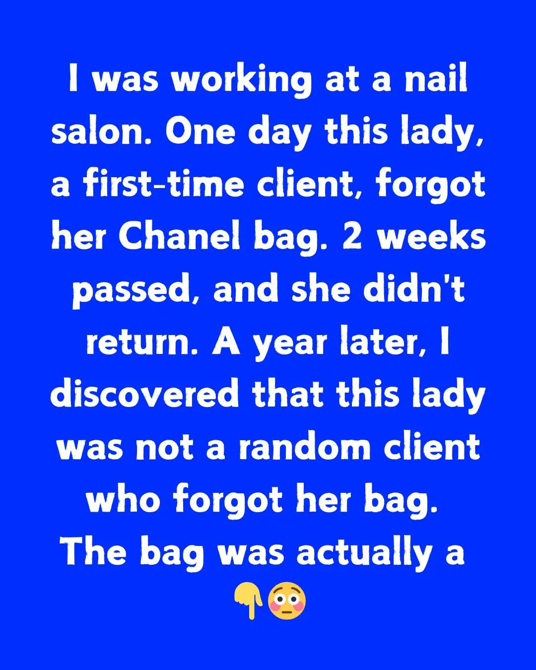 One day, this lady, a first-time client, forgot her Chanel bag. I put it in the lost & found.