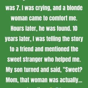 My son instantly turned pale. He looked at me and remarked, ’’ Sweet? Mom, that’s not what happened. That woman was actually the one who took me. She and a man carried me to the parking lot and kept me in their car for a while. I remember them arguing.’’ He went on, ’’She came back to distract you, but it was her boyfriend who changed his mind and let me go.’’