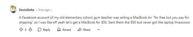 Two days later, the money was gone, and I contacted PayPal, but because it was a “virtual” item I sold, they wouldn’t do anything for me. The scammer had claimed that someone stole their account, and PayPal believed them with no proof or further investigation.