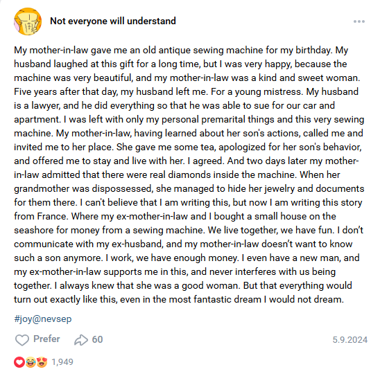 We thought there was a trick, and it’s not for free, but the evening before departure, when the owners came to say goodbye to us, they said that we reminded them very much of themselves in their youth. I came back from holiday pregnant, so I don’t even know when we’ll be able to visit them again. © Overheard / VK