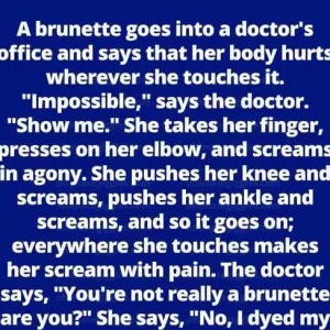 The doctor says, “You’re not really a brunette are you?” She says, “No, I dyed my hair. I’m naturally blonde.”