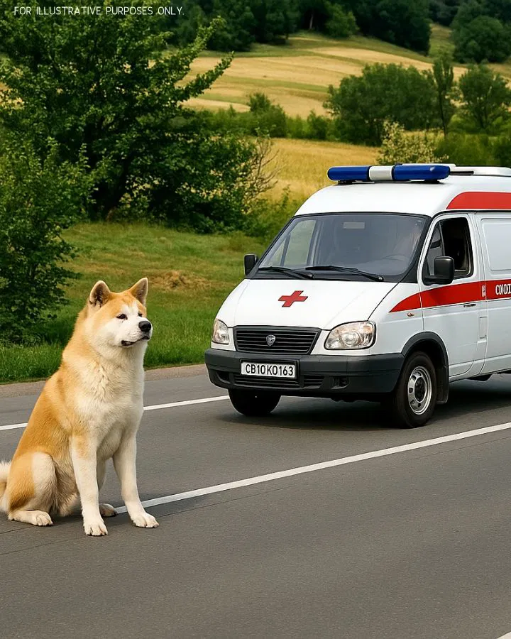 Despite several honks, she refused to budge. In all their years of medical service, the team had encountered many unusual events—but never a dog blocking their route like this. One of the nurses stepped out, attempting to shoo the dog away.