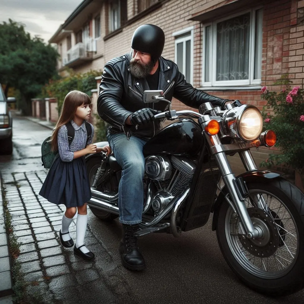 A 12-year-old girl was walking home from school one day when an unexpected encounter caught her off guard—or so it seemed at first. A tall man on a shiny red motorcycle pulled up beside her, determined to get her attention.