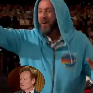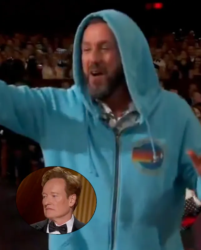 After Conan O’Brien picked him out among the star-studded audience for wearing a casual outfit to the lavish Academy Awards, Adam Sandler loudly stomped out of the Dolby Theatre.