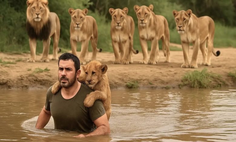 He was trapped in chest-deep water, holding a lion cub with six full-grown lions blocking his path to safety. Any sudden movement could trigger an attack that would end his life in seconds. The largest lioness, clearly the pride’s matriarch, took a step closer to the water.