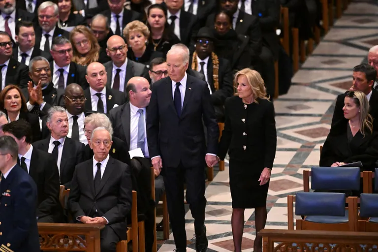 Joe Biden and Dr. Jill Biden arriving at the State Funeral Service for former U.S. President Jimmy Carter at the Washington National Cathedral in Washington, D.C., on January 9, 2025. | Source: Getty Images