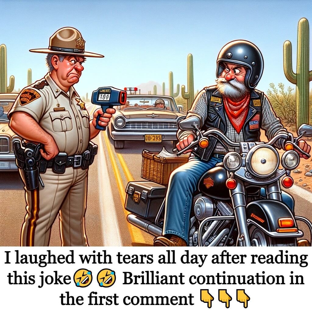 An Arizona Highway Patrol officer stops a Harley for traveling faster than the posted speed limit: