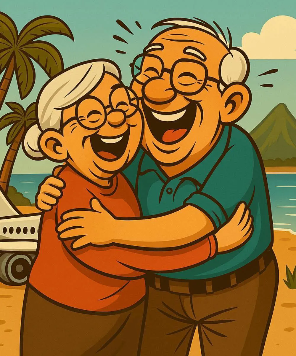 An elderly couple was flying to Hawaii for a two-week vacation to celebrate their 50th anniversary.