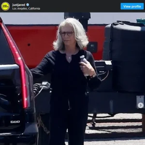 At 65, Jamie Lee Curtis flaunts new shoulder-length gray hair on film set