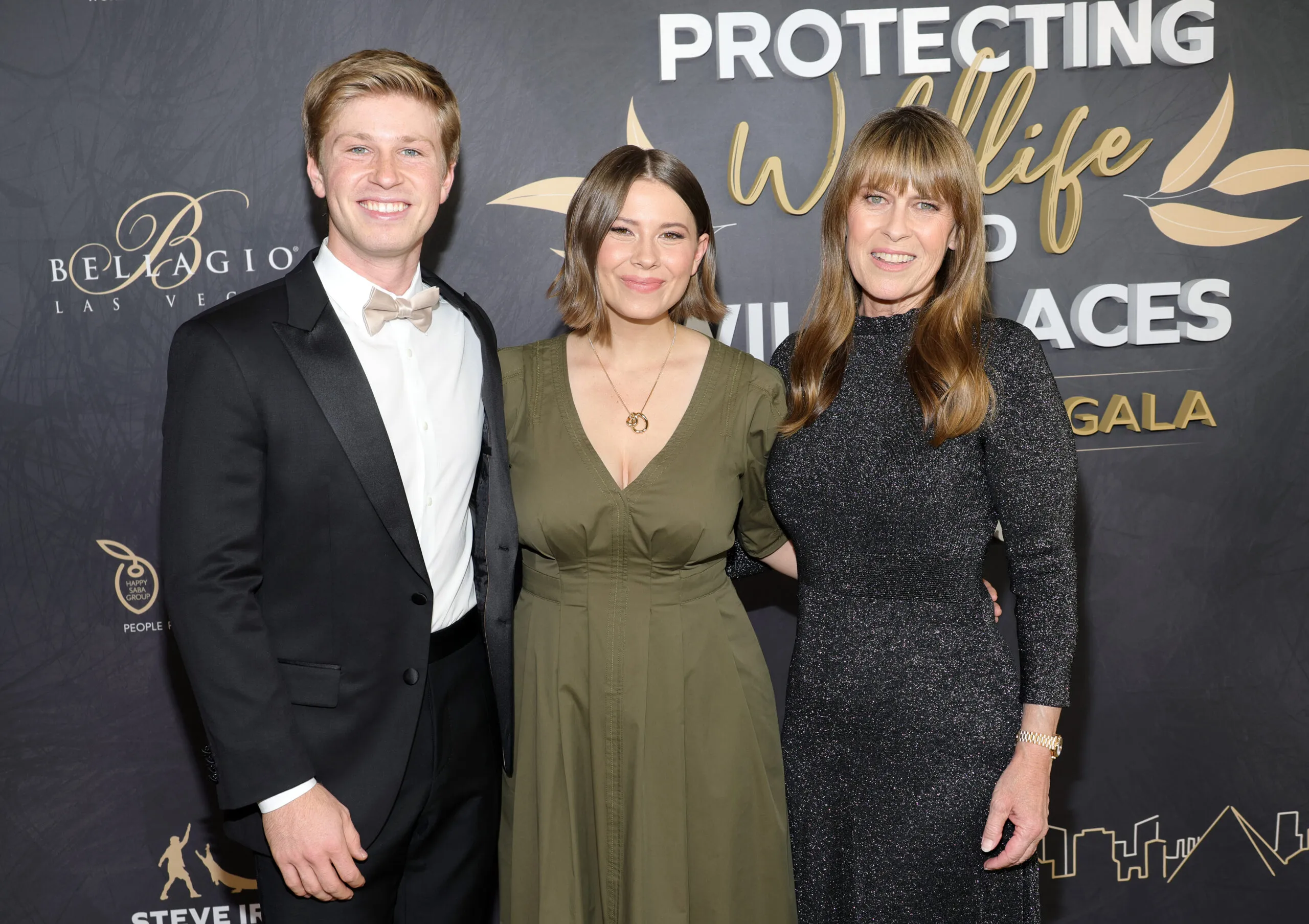 LAS VEGAS, NEVADA – MAY 11: (L-R) Robert Irwin, Bindi Irwin and Terri Irwin attend the Steve Irwin gala to support the Wildlife Warriors conservationist organization at Bellagio Resort & Casino on May 11, 2024 in Las Vegas, Nevada. (Photo by Ethan Miller/Getty Images)
