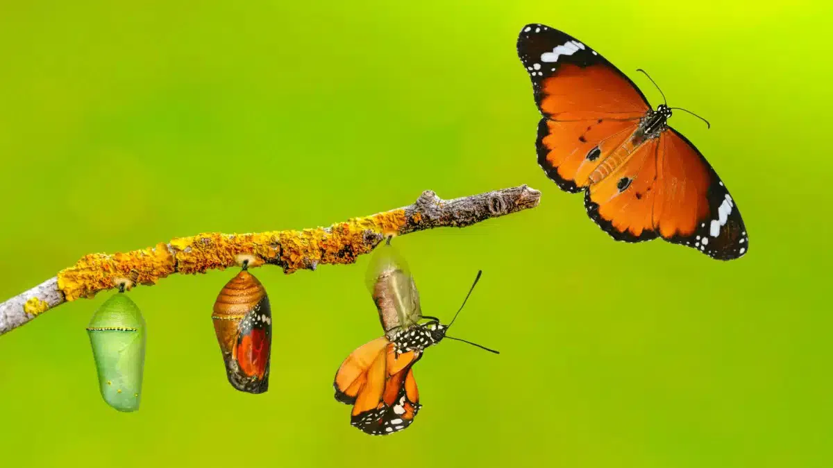 This process—retreating into a chrysalis only to emerge renewed—mirrors our own internal evolution.
