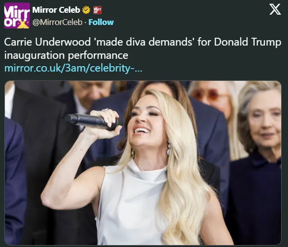 When her performance at Donald Trump’s inauguration didn’t go as planned, an insider claims that Carrie Underwood was “furious” and had a “mini hissy fit,” earning the singer the title of “inauguration day diva.”