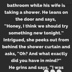 He leans on the door and says, “Honey, I think we should try something new tonight.”