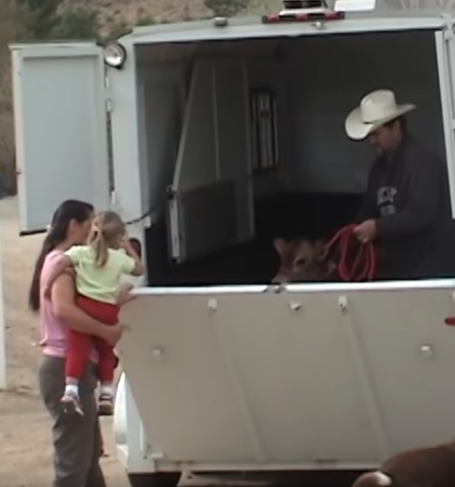 They found out from the farm’s phone call that her calf had been sold for meat and was being taken to a butcher.