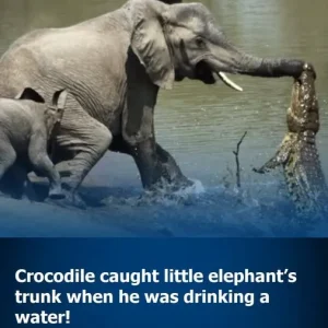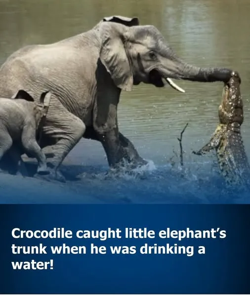When a crocodile attempted to seize a newborn elephant’s trunk, the young calf narrowly escaped thanks to its mother’s swift intervention. The dramatic event unfolded at a watering hole in the heart of the African wilderness, where the young elephant found itself locked in a life-or-death battle with the fearsome reptile.