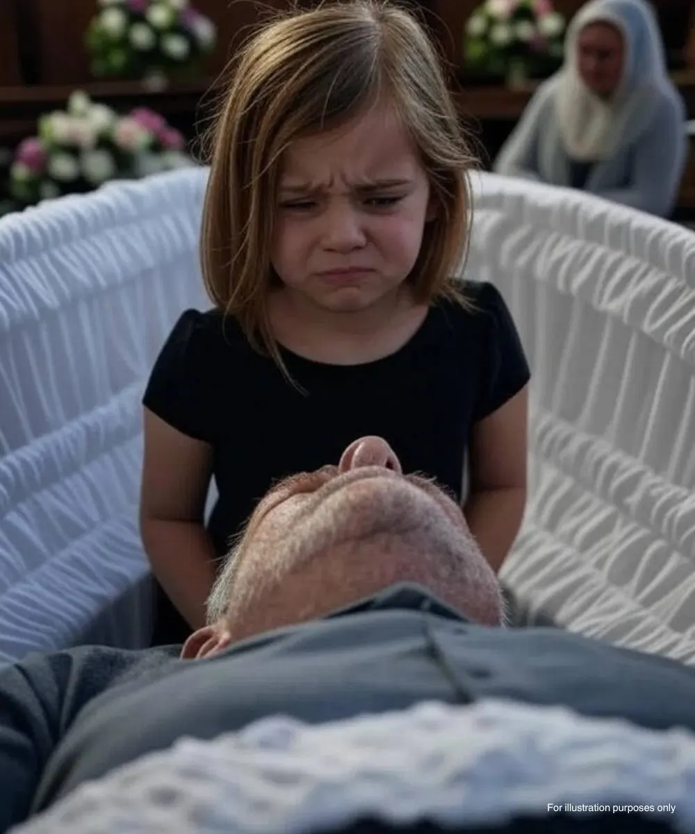 As the ceremony drew to a close, a family member gently picked up the little girl and brought her closer to the open casket. The room grew silent, reverent.