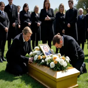 Louis leaned his head on his wife’s coffin, his hands gripping the wooden edge tightly. He choked, his voice faltering: