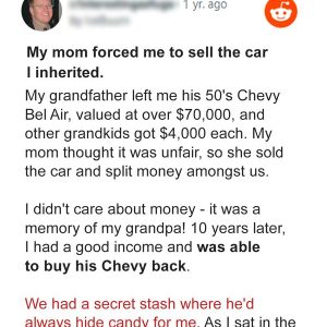 She refused to let me inherit it, citing my inability to drive at such a young age. She had decided to sell the car and divide the money among my sisters, cousins, and me. I was devastated by the utter lack of respect for Grandpa’s memory and the disregard for his hard work on the car.