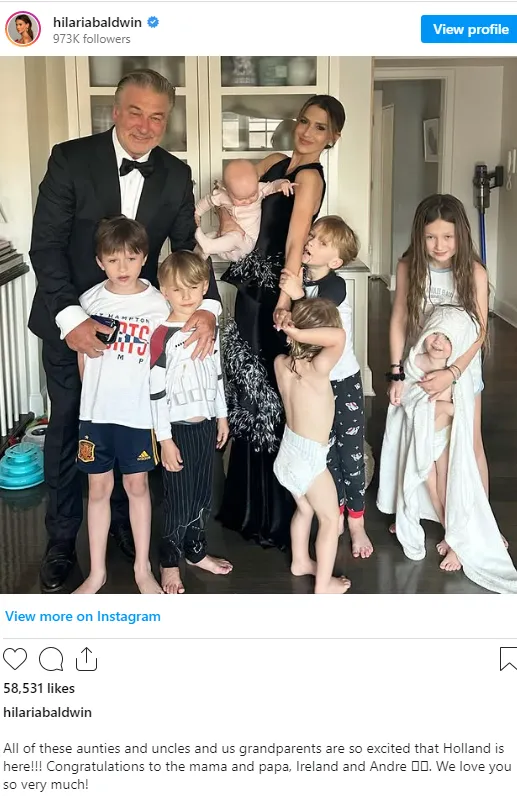 She then made another post expressing how excited the rest of her children are about the newest addition to their family, writing: “Her Baldwinito siblings are spending the day bonding and welcoming her into our home.”