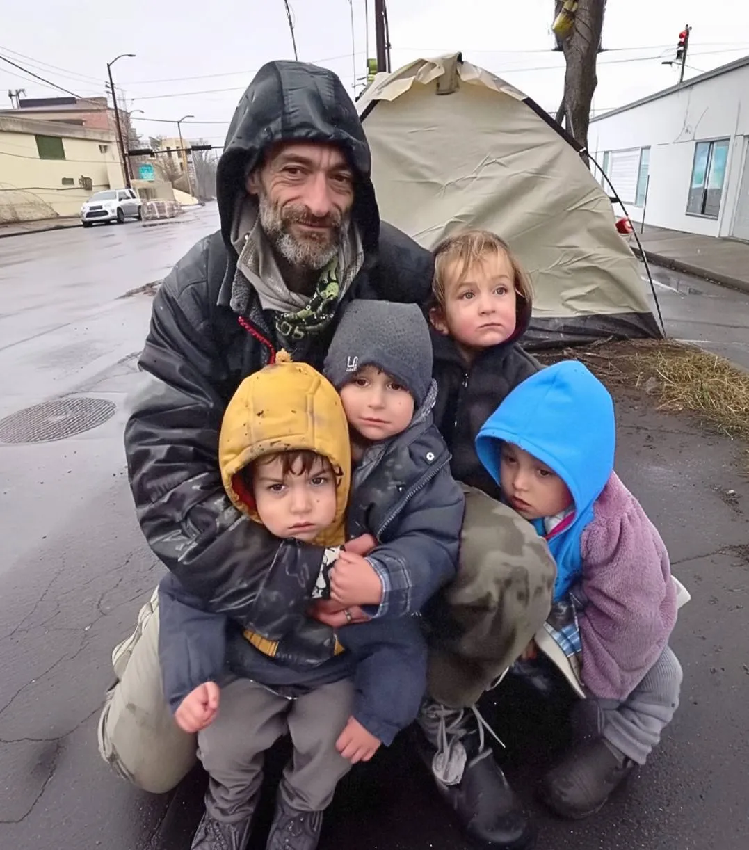 Brandon was a father of four, living in a tattered tent on the edge of a gas station parking lot. Life had been unkind, but he clung to his dignity and love for his children. His days were spent scraping together enough change for a can of beans or a loaf of bread to share with his family.