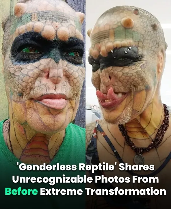 In a story that has captivated audiences worldwide, Tiamat Legion Medusa, known for their radical body modifications, has shared unrecognizable “before” photos from their life prior to their extraordinary transformation into a self-proclaimed “genderless dragon.” Their journey is as much about personal identity as it is about breaking societal norms and pursuing authenticity.