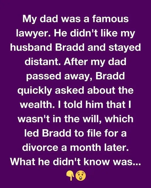 Sarah’s father forewarned her that Bradd, a fellow student whom she married, was indolent and envious of their family’s wealth. Bradd was initially worried about her inheritance after her father passed away, but Sarah disclosed that because she was adopted, she wasn’t listed in the will. Sarah soon learned of her father’s scheme after he filed for divorce.