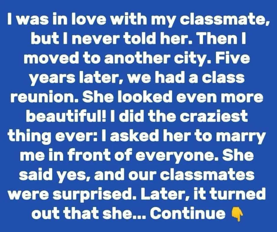 I did the craziest thing in my life: I asked her to marry me in front of everyone. She said yes, and our classmates were shocked.