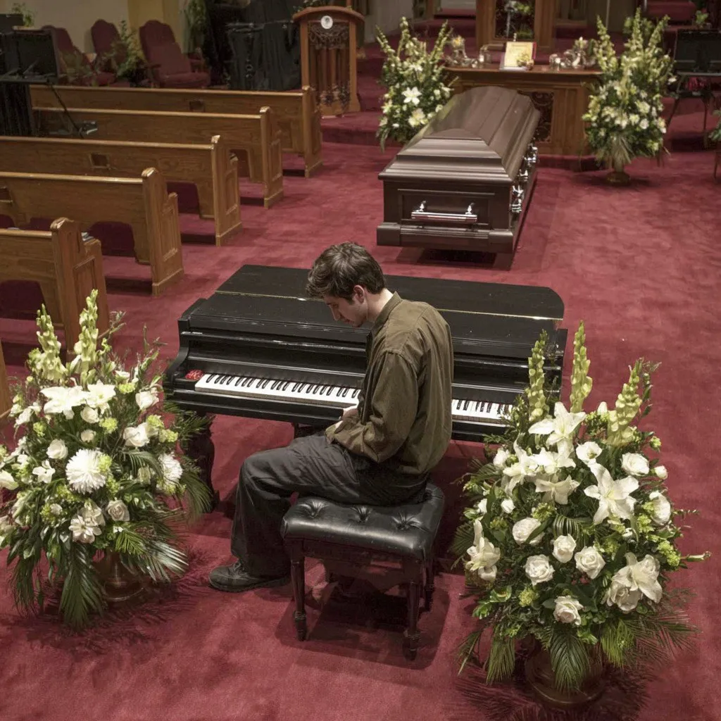 I sat at that funeral home piano, playing to an audience of one closed casket and empty pews, when the doors suddenly burst open and a little girl in a wheelchair rolled herself down the aisle, crying so hard she could barely breathe.