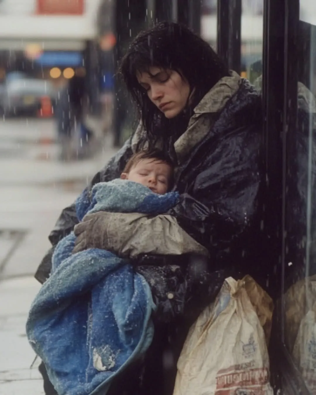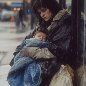 Rhiannon’s arms were full of groceries as she stepped into a light drizzle. The cold air bit at her skin, and she just wanted to get home. Then she saw her—the woman sitting on the curb, holding a baby wrapped in a faded blanket. Her face was pale, and her eyes were hollow with exhaustion, but she cradled the child like he was the only thing keeping her grounded.