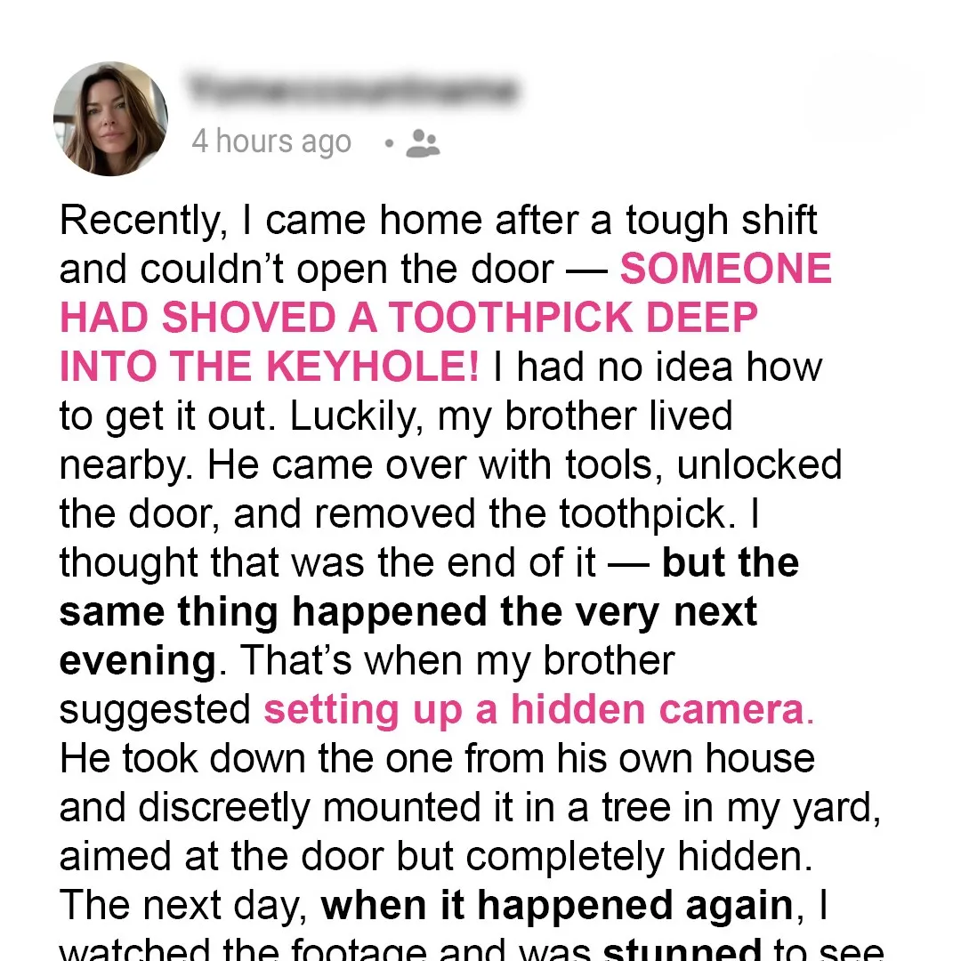 There he was, in a puffy jacket, crouching in front of my door with a toothpick like he was conducting lock surgery. I watched the video three times to make sure my sleep-deprived brain wasn’t hallucinating.