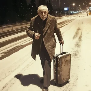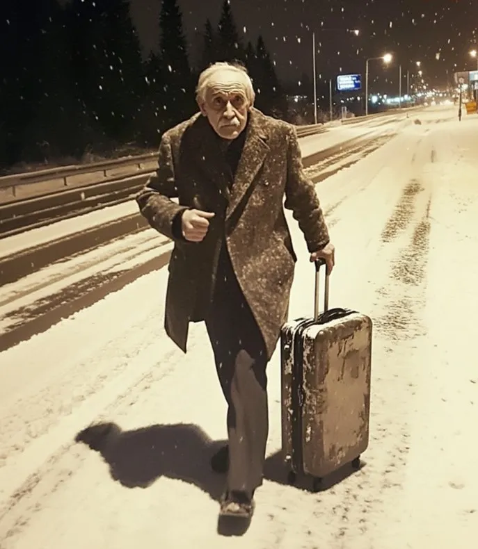 The road curved sharply, and that’s when I saw him. My headlights caught the figure of an old man walking on the shoulder of the highway. He was hunched over, carrying a battered suitcase, his steps slow and labored.