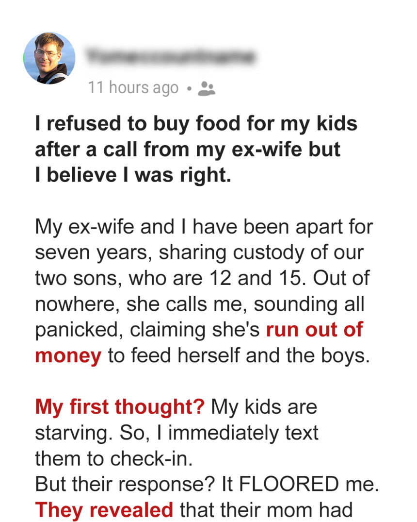 In your opinion, was OP right in refusing to give money to his ex-wife? What would you do if you were in OP’s place?