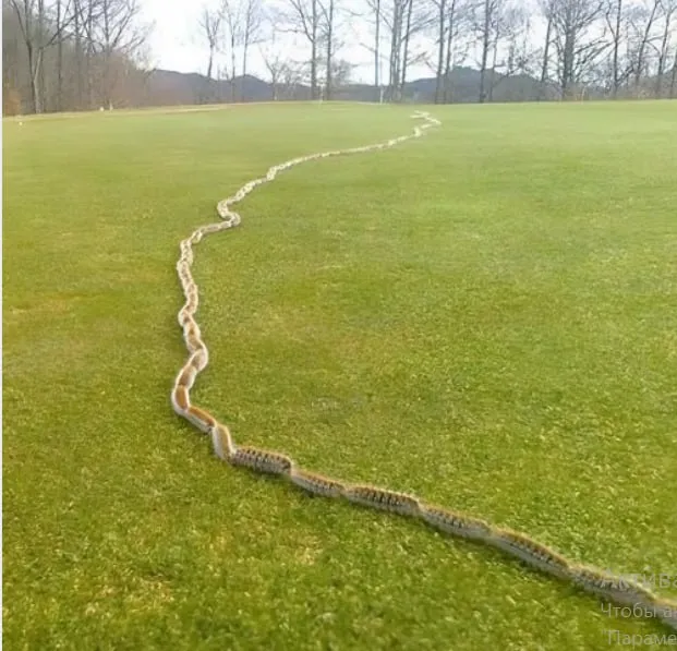 As I crept closer, the truth revealed itself in a slow, horrifying wave. It wasn’t a rope—and thank God it wasn’t a snake either. What lay before me was far stranger. A wriggling, creeping column of caterpillars—about 150 of them, which I later counted—stretched across the yard like a living chain. They moved in perfect formation, nose to tail, forming a single undulating line as though following some silent commander. I could hardly breathe from the shock; I had never imagined such a phenomenon could unfold in my own backyard.