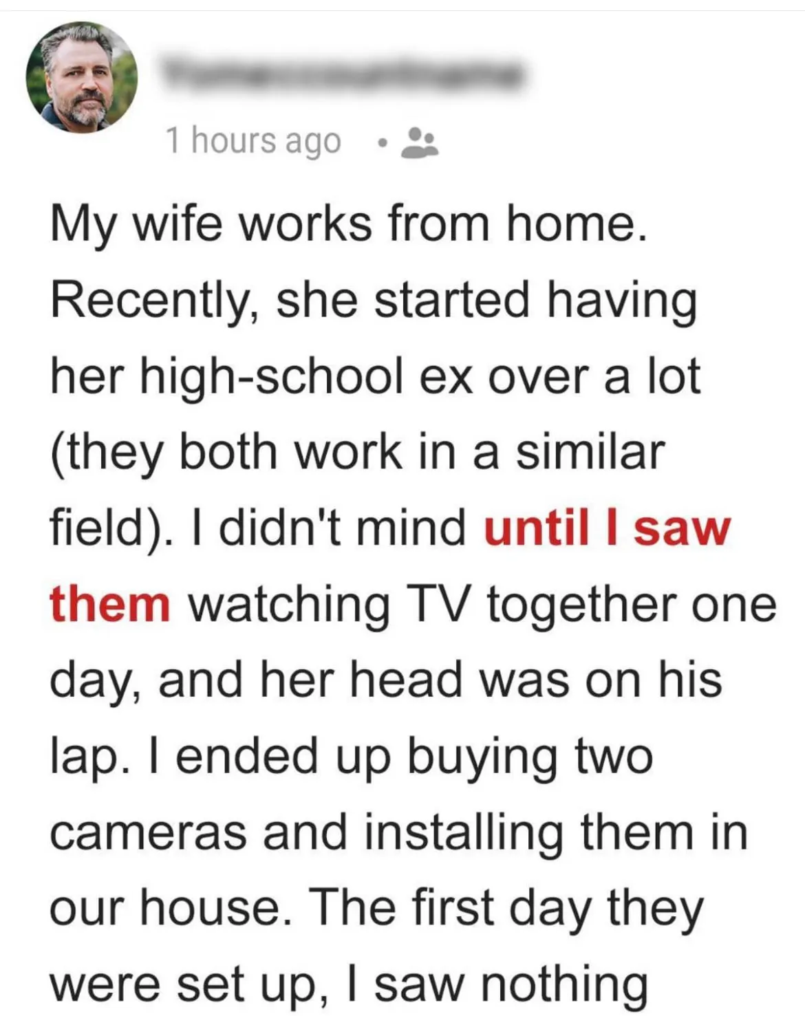 After the OP’s suspicions seemingly checked out the hidden camera footage, the situation took a disturbing turn. Photographic evidence made the truth clear and indisputable: his wife and her ex were spending private time together in their home. Now that the betrayal has been revealed, the OP has been left to deal with the emotional fallout.