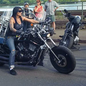 Julia stood there, completely still, her mouth just a bit ajar. For a moment, she could only gaze at her mother, who seemed completely at ease perched on the sleek Harley-Davidson.