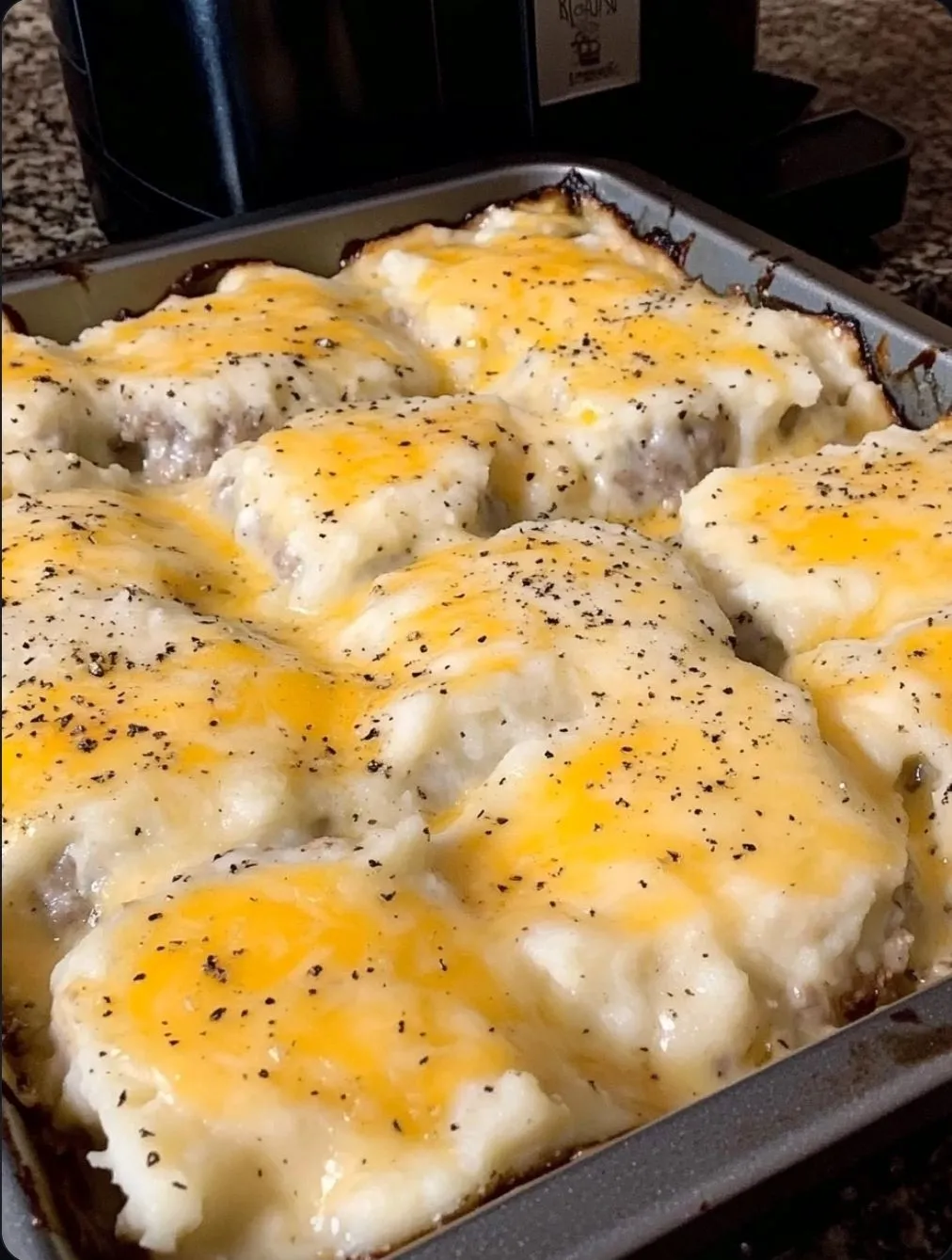 This recipe provides a classic comfort meal of meatloaf topped with creamy mashed potatoes and melted cheddar cheese. It’s a hearty and satisfying dish perfect for family dinners.