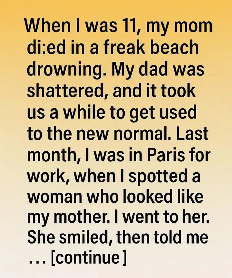 She looked exactly like my mother. The same eyes, the same way she tucked her hair behind her ear. My heart raced as I followed her, caught between disbelief and a desperate hope I couldn’t explain.