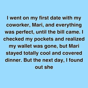 I went on my first date with my coworker, Mari, and everything was perfect, until the bill came. I checked my pockets and realized my wallet was gone, but Mari stayed totally cool and covered dinner. But the next day, I found out she sent me a Venmo request for exactly $47.83.