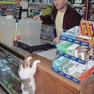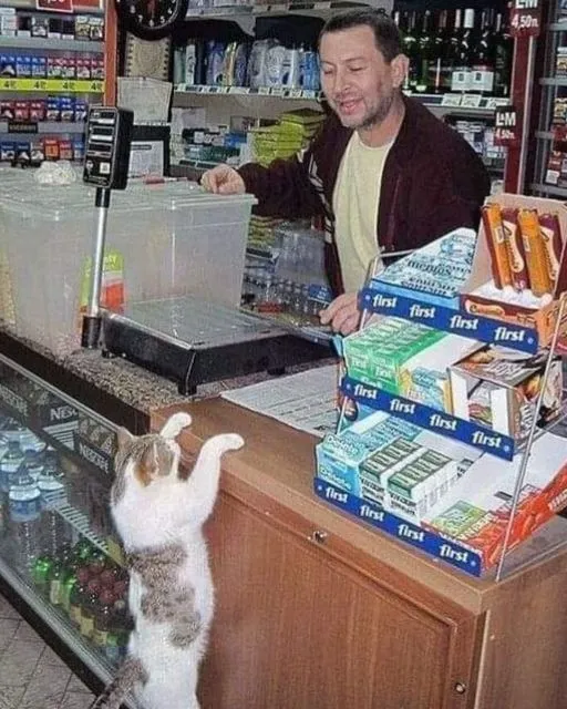 The store owner turned to face me, his amused eyes sparkling. “Oh, of course. Mr. Whiskers is his name. occasionally visits for his snacks, even though he lives right down the street. He is the most devoted client of the store.