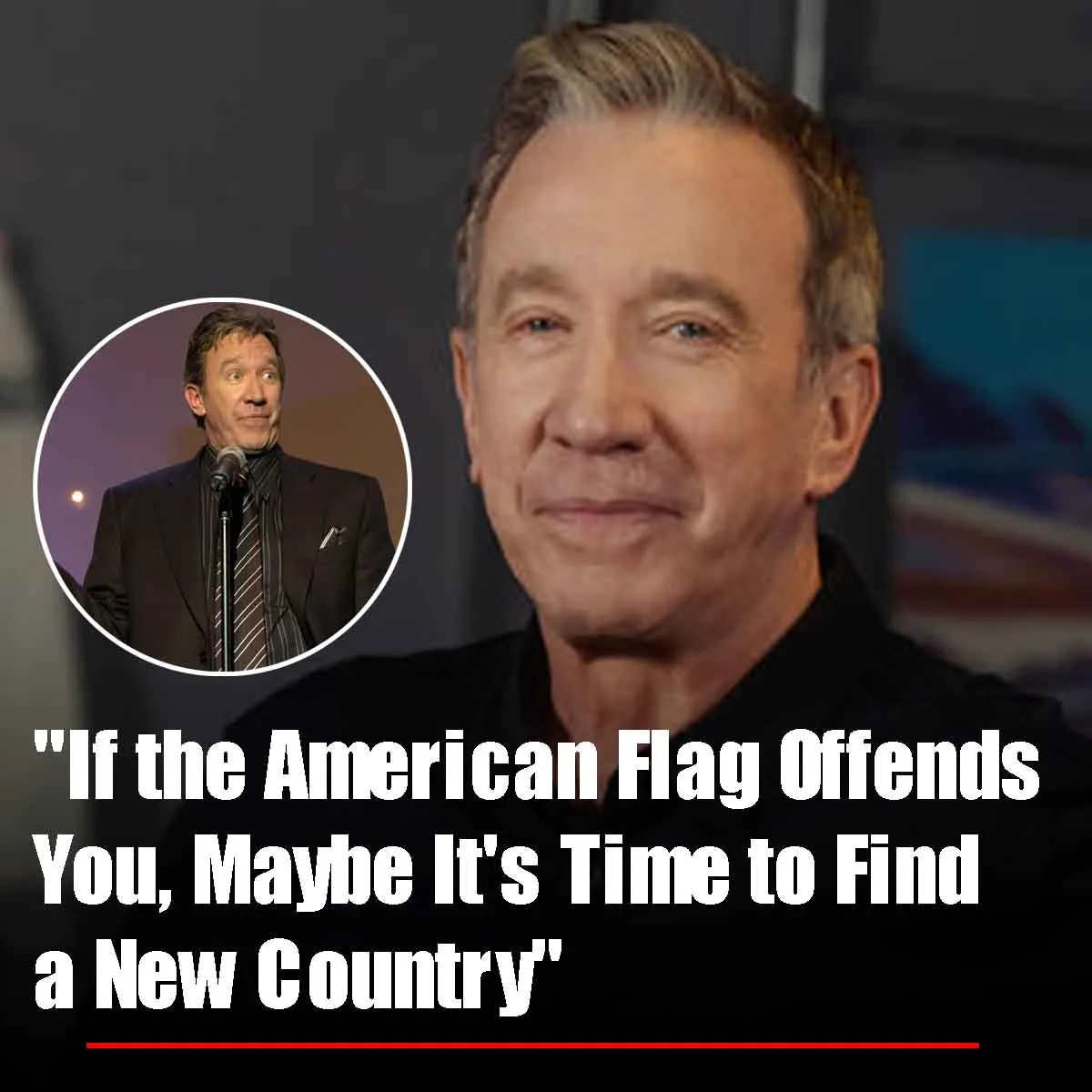 Tim Allen, a proud advocate for American values, has a message for those who take issue with the American flag: “If the American flag offends you so badly, maybe it’s time for you to find anew country.”
