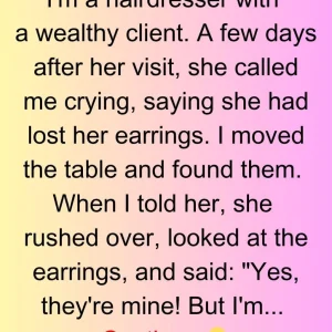 When I told her, she rushed over, looked at the earrings, and said: “Yes, they’re mine! But I’m… so embarrassed. I actually thought someone had stolen them.”