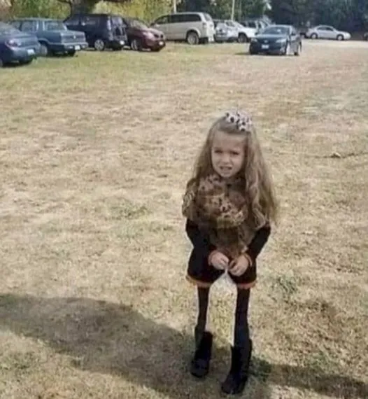 Well, what you probably failed to spot upon first glance is that the girl is actually holding a bag of popcorn which blends in with the dry grass behind her.