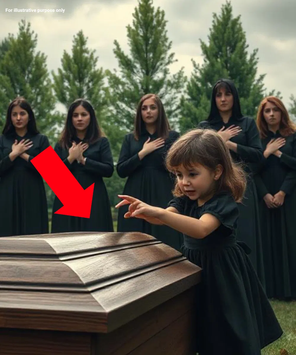 — Daddy! Daddy! — the little girl cried, pointing her tiny finger toward the casket.