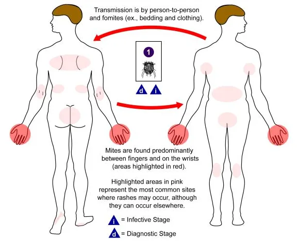 These mites thrive in crowded places like nursing homes and spread through shared beds, clothing, or towels. You can pass scabies on before any symptoms show up. They survive on furniture and bedding for up to three days. Even very clean people can get infected because it spreads mainly through skin-to-skin contact, not poor hygiene. Outbreaks are common in nursing homes, jails, and daycares. This type of mite can’t jump or fly, it crawls on skin at about one inch per minute. Humans are the primary source of scabies, while animal mites rarely affect people.