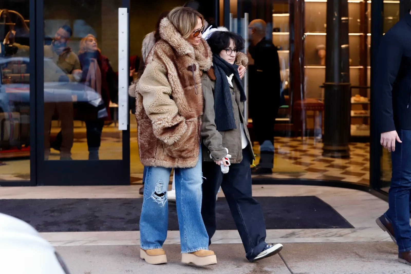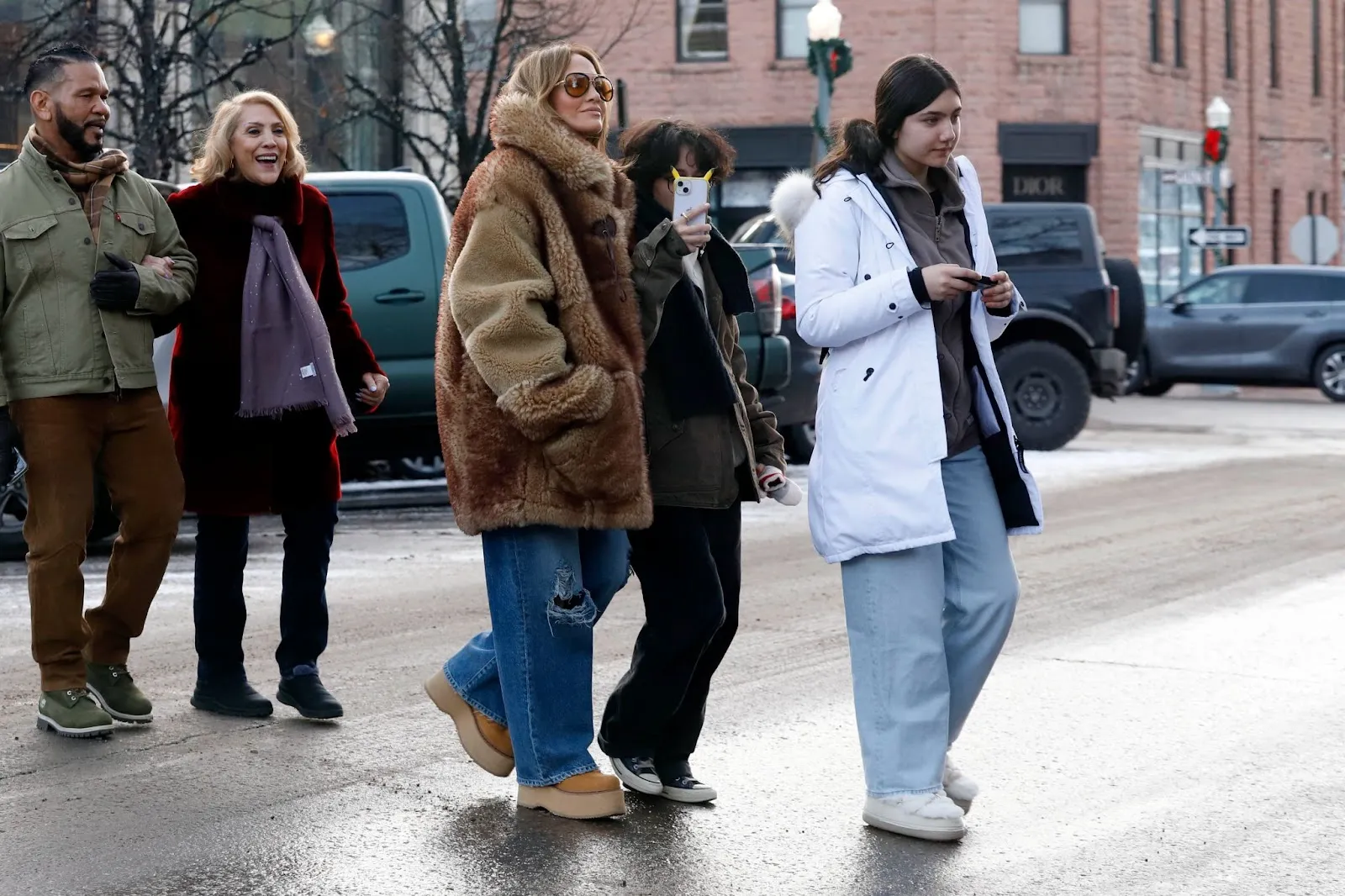 Jennifer Lopez embraced the snowy Christmas atmosphere in Aspen, Colorado, spending the festive season with her family and friends. The singer-songwriter was seen strolling through the charming streets, bundled up in a cozy brown fur coat paired with ripped jeans and stylish brown flats.